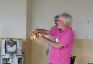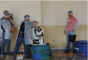 Em 25 de novembro de 2017, as técnicas da RSC, Denise Barbosa Silva e Juliana Dieter Mancini, coordenaram no povoado de Água Boa, distrito de Sítio d'Abadia, GO a realização de uma oficina de sensibilização para os envolvidos na cadeia produtiva do pequi na região. O encontro contou com a participação de 35 pessoas que se envolveram em dinâmicas e relatos de experiência das práticas de manejo do pequi e no estabelecimento das etapas da cadeia produtiva. Representando a NAIAK, o sr. Abdias apresentou as perspectivas e planejamento da empresa para a safra de 2017/2018 e, juntamente com outros funcionários, apontou a diferença entre pequis de boa e má qualidade e demonstrou o processo extração primária de óleo realizado no distrito de Água Boa. Todos receberam certificados de participação e a maioria demonstrou interesse em melhorar a qualidade dos frutos entregues à NAIAK e em participar da próxima fase do trabalho da RSC, que será o acompanhamento e mapeamento da coleta do pequi.