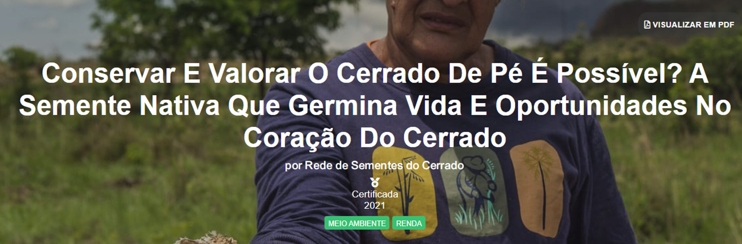 Com o projeto “Conservar e valorar o Cerrado de pé é possível? A semente nativa que gemina vida e oportunidades no coração do Cerrado”, a iniciativa socioambiental desenvolvida pela Rede de Sementes do Cerrado (RSC), está entre os finalistas na 11ª edição do Prêmio Fundação Banco do Brasil de Tecnologia Social e concorre com mais dois projetos, na categoria Meio Ambiente e Renda. Com o objetivo de complementar a renda familiar, trabalhar a inclusão social e de gênero e educação ambiental, o projeto que envolve pequenos agricultores, assentados e quilombolas da região da Chapada dos Veadeiros (GO), vem trazendo inúmeros benefícios às comunidades que vivem no Cerrado brasileiro.