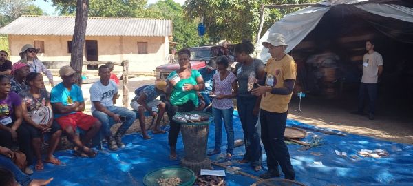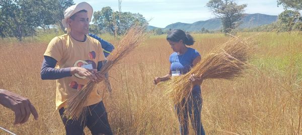 Nesta quinta, 11, os representantes da Caixa Econômica Federal reuniram-se com coletores de sementes da comunidade quilombola do Vão do Moleque, em Cavalcante (GO), durante o segundo módulo do curso de coleta de sementes nativas.