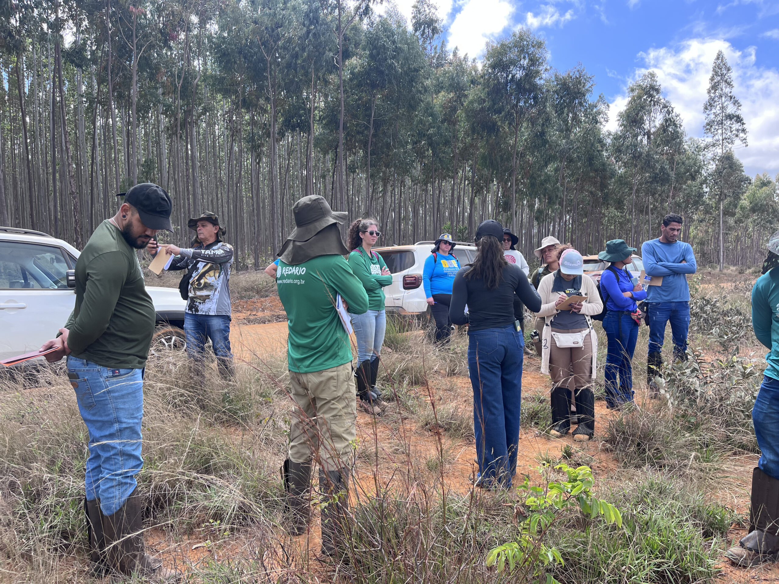 Em São João do Paraíso, os participantes mergulharam em realidades distintas da restauração. A primeira parada foi em áreas restauradas pela Sementes do Paraíso, que antes eram ocupadas por monoculturas de eucalipto. Na sequência, os participantes foram desafiados a pensar coletivamente em soluções para futuras áreas de restauração, parte do projeto Restauração Inclusiva em larga escala, executado pela RSC.