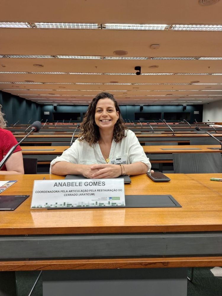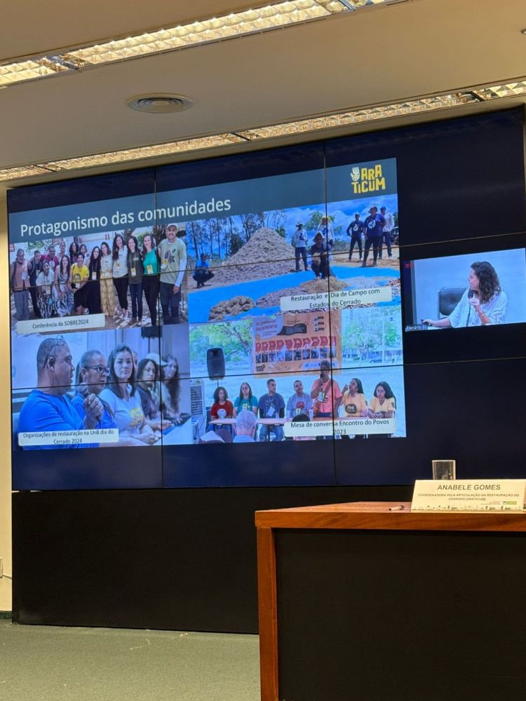 A Comissão do Meio Ambiente e Desenvolvimento Sustentável da Câmara dos Deputados realizou, nesta quinta-feira, 28, uma audiência pública para debater a criação do Dia Nacional da Restauração de Ecossistemas, proposto para ser celebrado em 19 de novembro. Representando a Articulação pela Restauração do Cerrado (Araticum), a presidente da Rede de Sementes do Cerrado (RSC), Anabele Gomes, participou das discussões, junto com representantes das demais redes biomáticas brasileiras. Na ocasião, foram abordados temas como os desafios e as estratégias de restauração de áreas degradadas, destacando a necessidade de políticas públicas mais robustas e de mecanismos financeiros que incentivem iniciativas de restauração.