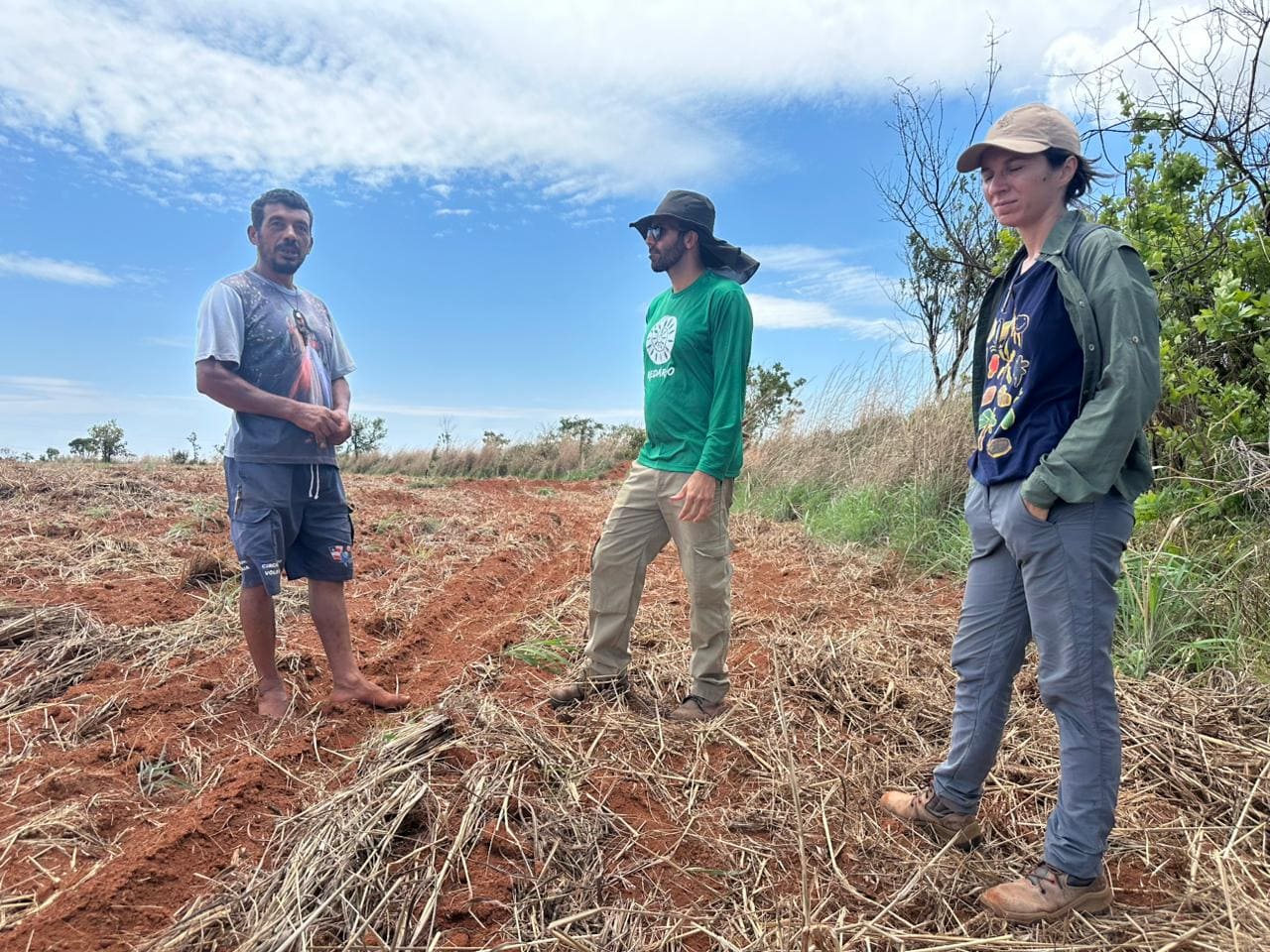 Em parceria com a Associação dos Produtores Agroecológicos do Alto São Bartolomeu (Aprospera), a equipe técnica da Rede de Sementes do Cerrado (RSC), realizou na última semana, uma visita técnica para acompanhar o preparo de áreas para a implantação dos Sistemas Agrocerratenses (SACEs) no Assentamento Oziel Alves III, em Planaltina de Goiás. As ações fazem parte do projeto “Sementes do Cerrado: caminhos para o fortalecimento da cadeia de restauração ecológica inclusiva nos corredores da biodiversidade“, apoiado pelo edital Floresta Viva do Fundo Brasileiro para a Biodiversidade (FUNBIO) e Banco Nacional de Desenvolvimento Econômico e Social (BNDES).