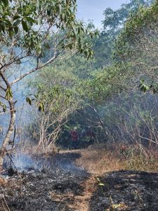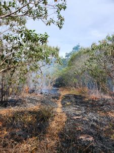Em Alto Paraíso equipe realiza queima controlada de área em restauração