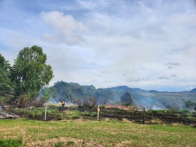 Queima controlada é feita em área de restauração em Alto Paraíso como parte do preparo para plantio