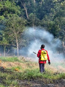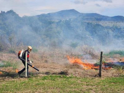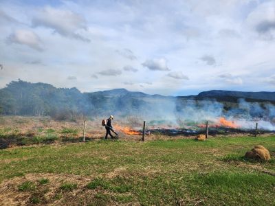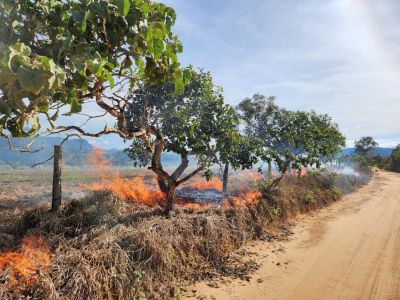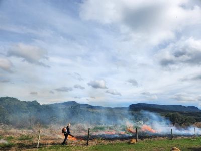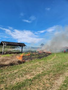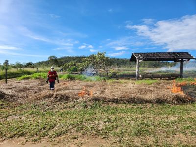 Visando preparar o solo para o plantio por meio da técnica da semeadura direta, a equipe do Projeto Águas Cerratenses: semear para brotar, realizou nesta quinta-feira, 13, a queima controlada de área, na fazenda Hy Brasil, em Alto Paraíso de Goiás (GO). A iniciativa trata-se de uma etapa do preparo do solo, uma vez que após arado é comum que o capim exótico rebrote.