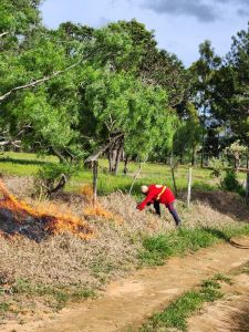 Coordenadora do Projeto, Alba Cordeiro explicou que inicialmente é feita a aplicação de herbicida, conhecido como controle químico e após o capim estar totalmente seco é feita a queima controlada. “Essa queima elimina o capim seco, o que facilita na continuação do preparo do solo e controle das espécies exóticas”, disse. A ação contou com o apoio da Brigada de Alto Paraíso de Goiás.