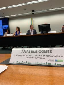 A Comissão do Meio Ambiente e Desenvolvimento Sustentável da Câmara dos Deputados realizou, nesta quinta-feira, 28, uma audiência pública para debater a criação do Dia Nacional da Restauração de Ecossistemas, proposto para ser celebrado em 19 de novembro. Representando a Articulação pela Restauração do Cerrado (Araticum), a presidente da Rede de Sementes do Cerrado (RSC), Anabele Gomes, participou das discussões, junto com representantes das demais redes biomáticas brasileiras. Na ocasião, foram abordados temas como os desafios e as estratégias de restauração de áreas degradadas, destacando a necessidade de políticas públicas mais robustas e de mecanismos financeiros que incentivem iniciativas de restauração.