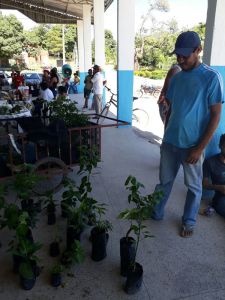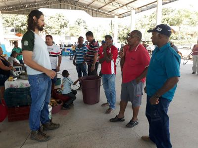 No domingo, Alexandre esteve na Feira do agricultor e conversou com produtores locais, que ficaram interessados em apoiar a restauração e se engajar na coleta de sementes.