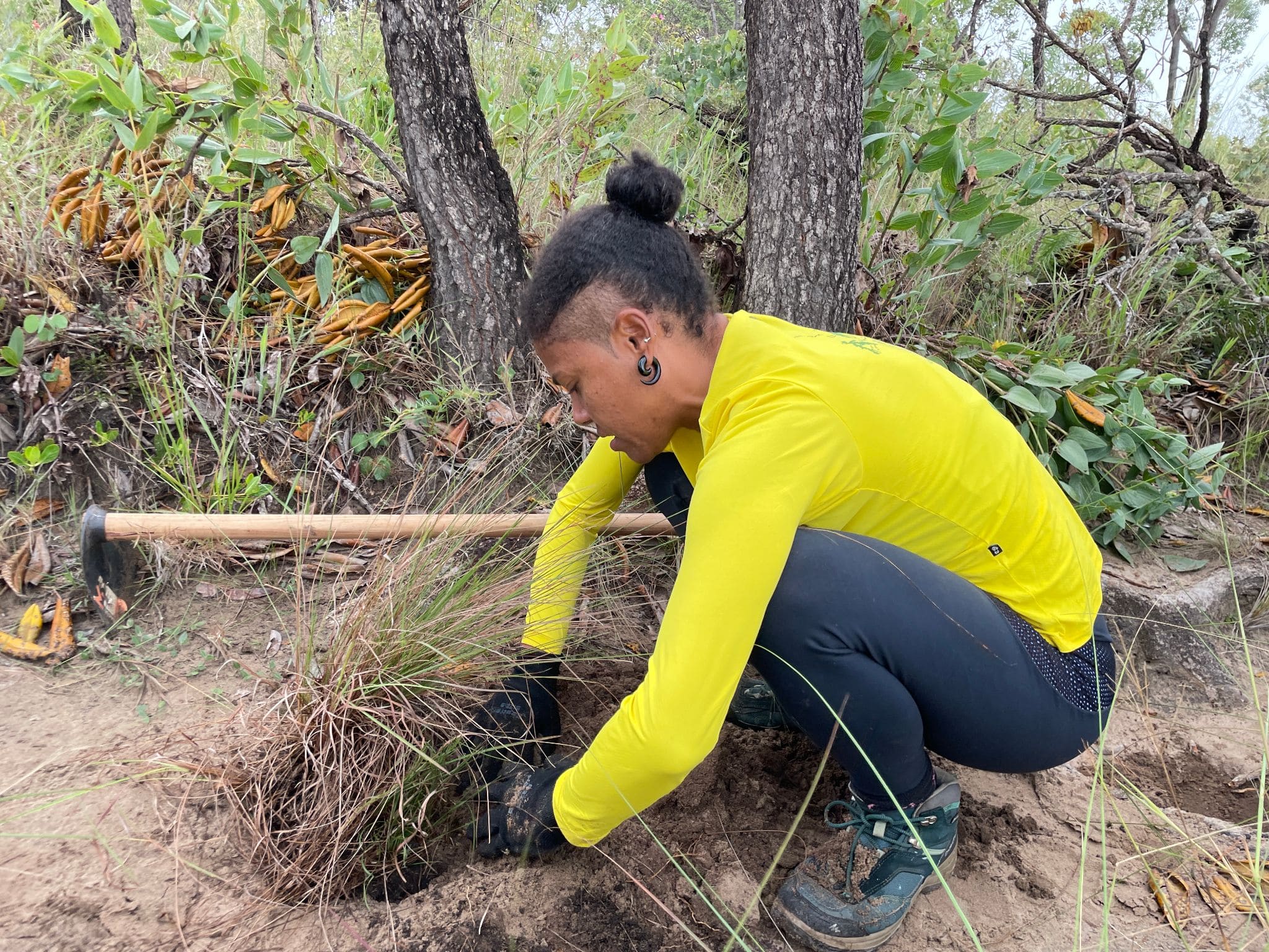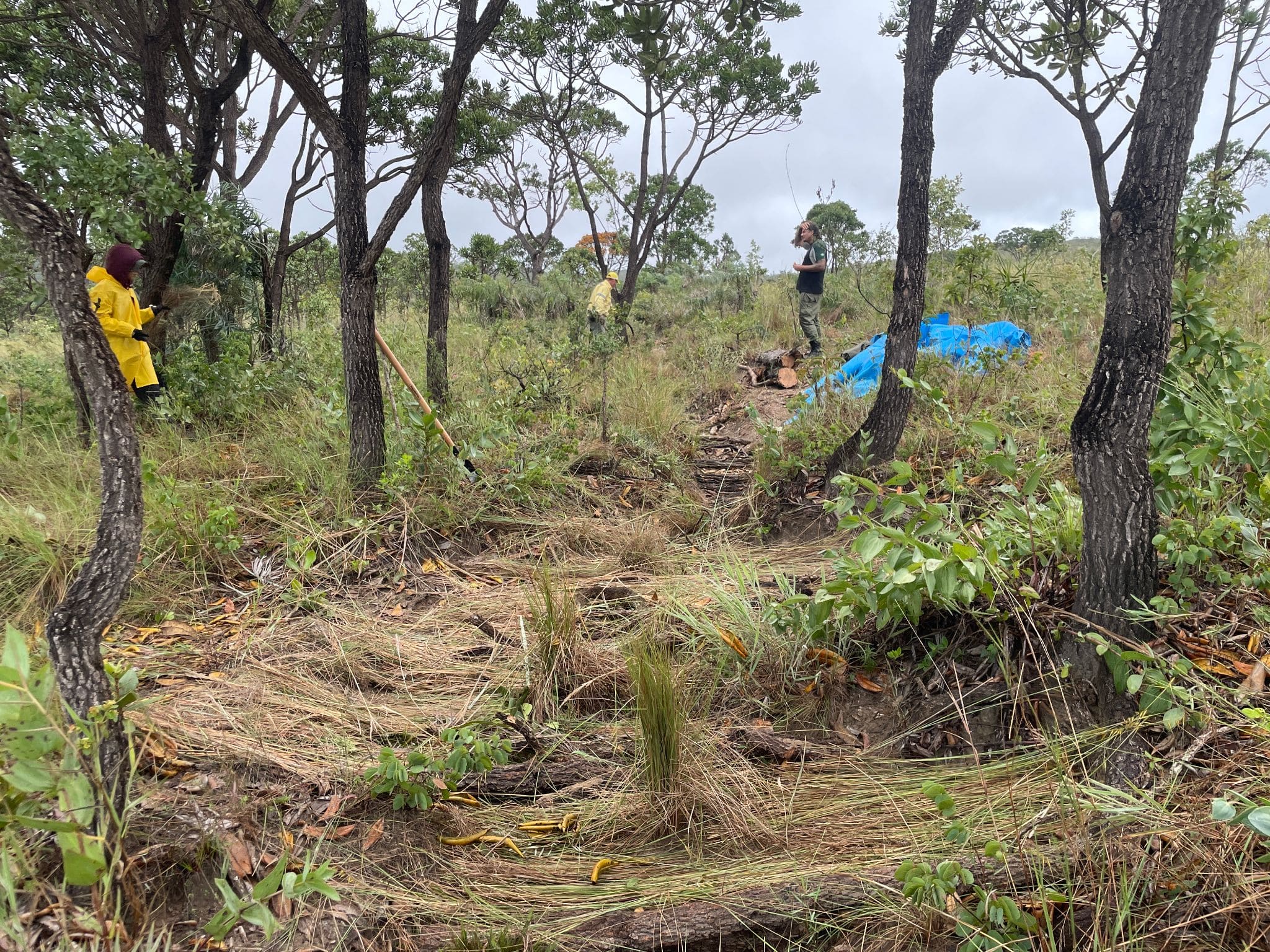 De acordo com Augusto Coelho, gerente de restauração do projeto, durante a atividade foram aplicadas diferentes técnicas voltadas à recuperação da área e à desativação efetiva da trilha. “Entre as estratégias adotadas estão o bloqueio do acesso com galhos, sinalizando o desuso do caminho; a contenção de processos erosivos por meio da construção de barreiras com troncos e galhadas; e a proteção do solo exposto com o plantio de touceiras transplantadas de áreas nativas próximas, além da deposição de leivas para favorecer a regeneração da vegetação”, explicou.