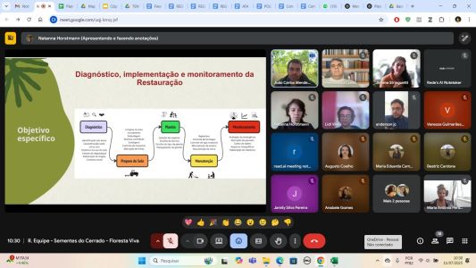 A Rede de Sementes do Cerrado (RSC) realizou, nesta sexta-feira (11), uma reunião virtual com a equipe técnica do projeto “Sementes do Cerrado: caminhos para o fortalecimento da cadeia da restauração ecológica inclusiva nos corredores da biodiversidade”. O encontro teve como objetivo apresentar oficialmente os integrantes de diversas áreas de atuação, alinhar diretrizes e discutir o cronograma das ações previstas para os próximos quatro anos.