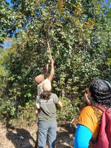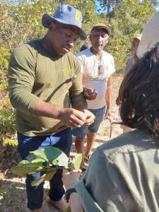 A formação incluiu um dia de campo, no qual foram tiradas dúvidas sobre as espécies já trabalhadas e identificadas duas novas espécies de arbustos a serem inseridas na lista de coletas. “A condução prática ficou por conta de coletoras experientes e instrutoras locais, fortalecendo o protagonismo comunitário no processo formativo”, disse Natanna Horstmann.