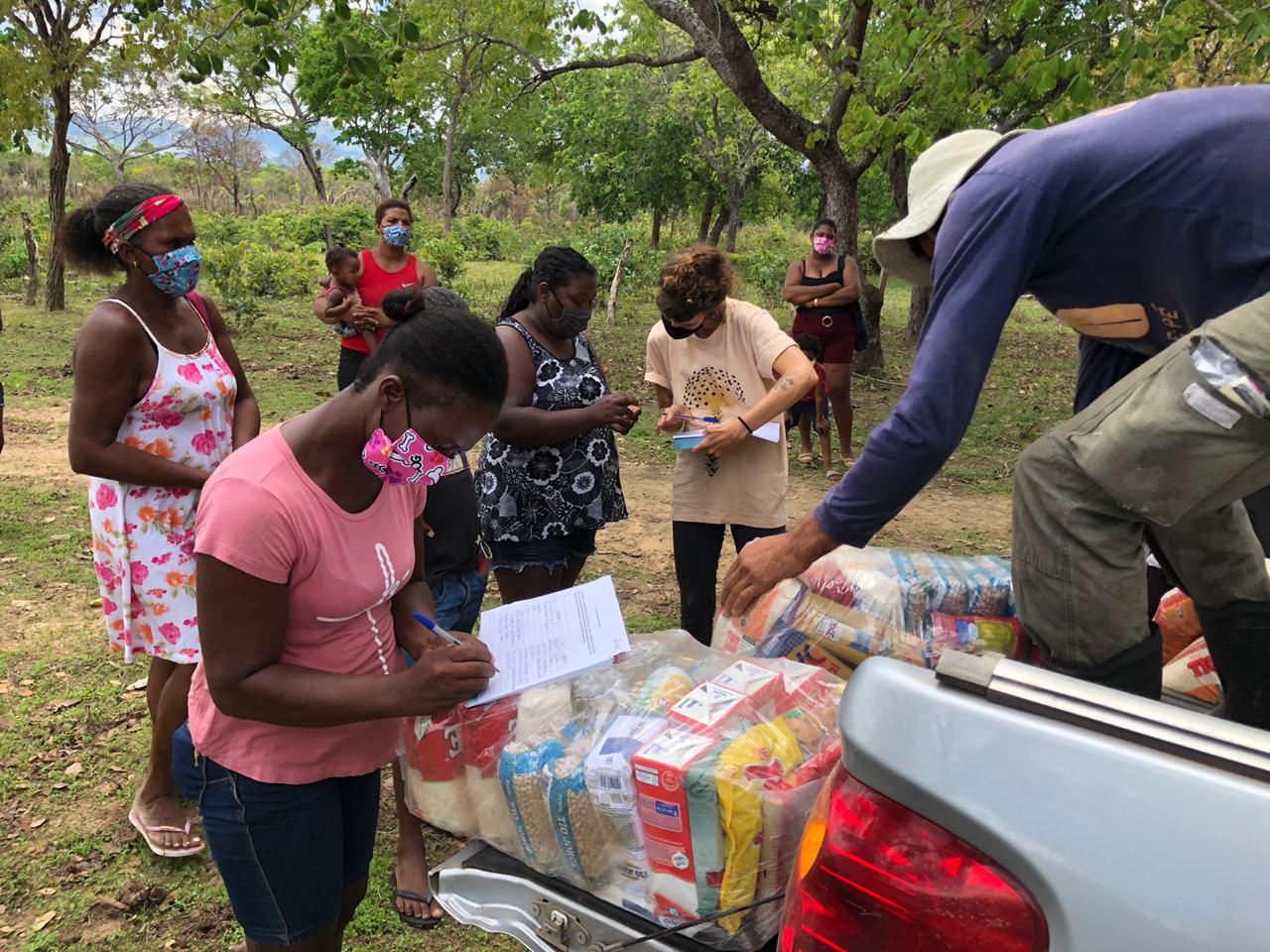 Durante o recebimento das sementes na comunidade quilombola Kalunga do Vão do Moleque e no galpão de sementes da Associação Cerrado de Pé, realizado na primeira semana de novembro, a equipe técnica da Rede de Sementes do Cerrado distribuiu cestas básicas, máscaras e álcool em gel aos coletores da Associação. A iniciativa contou com o apoio do Fundo de Parceria para Ecossistemas Críticos (CEPF) e do Instituto Caixa Seguradora que são os financiadores do Projeto “Mercado de Sementes e Restauração: Provendo Serviços Ambientais e Biodiversidade”, desenvolvido pela RSC. A Rede contra Fogo também colaborou com a doação de álcool em gel e máscaras.