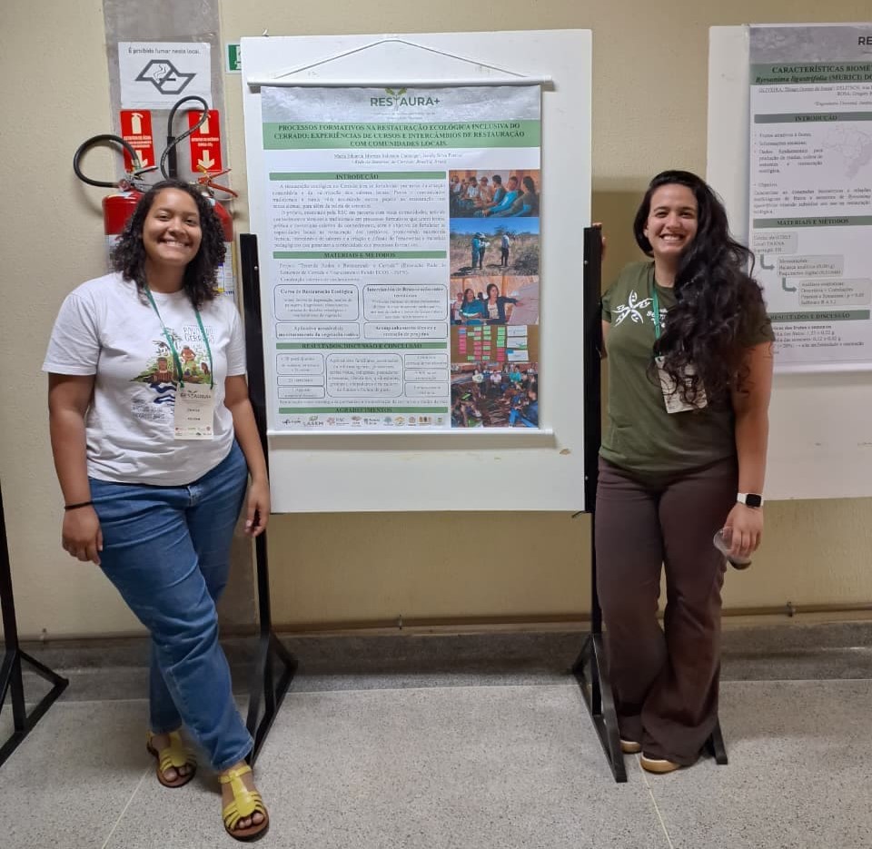 Ainda durante o simpósio, a coordenadora do Núcleo de Pesquisa e Desenvolvimento, Jamily Pereira e a coordenadora do Núcleo de Restauração da Rede, Maria Eduarda Camargo apresentaram o trabalho “Restauração ecológica inclusiva: comunidades como protagonistas na restauração de ecossistemas do Cerrado”.