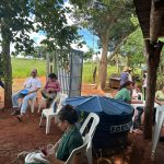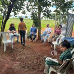 Para apresentação do sistema produtivo, os participantes realizaram visitas em duas áreas. Estiveram na propriedade da Dona Inês Santos e seu Sandro Santos, bem como da dona Emilene Paiva, onde foi possível conhecer outro contexto de implantação dos SACEs e participar de uma muvuquinha com o plantio coletivo de sementes nativas do Cerrado.