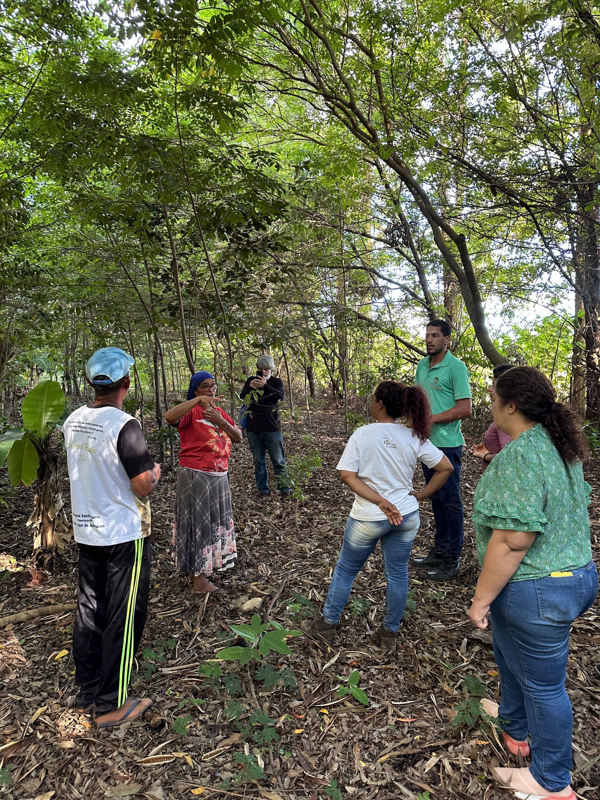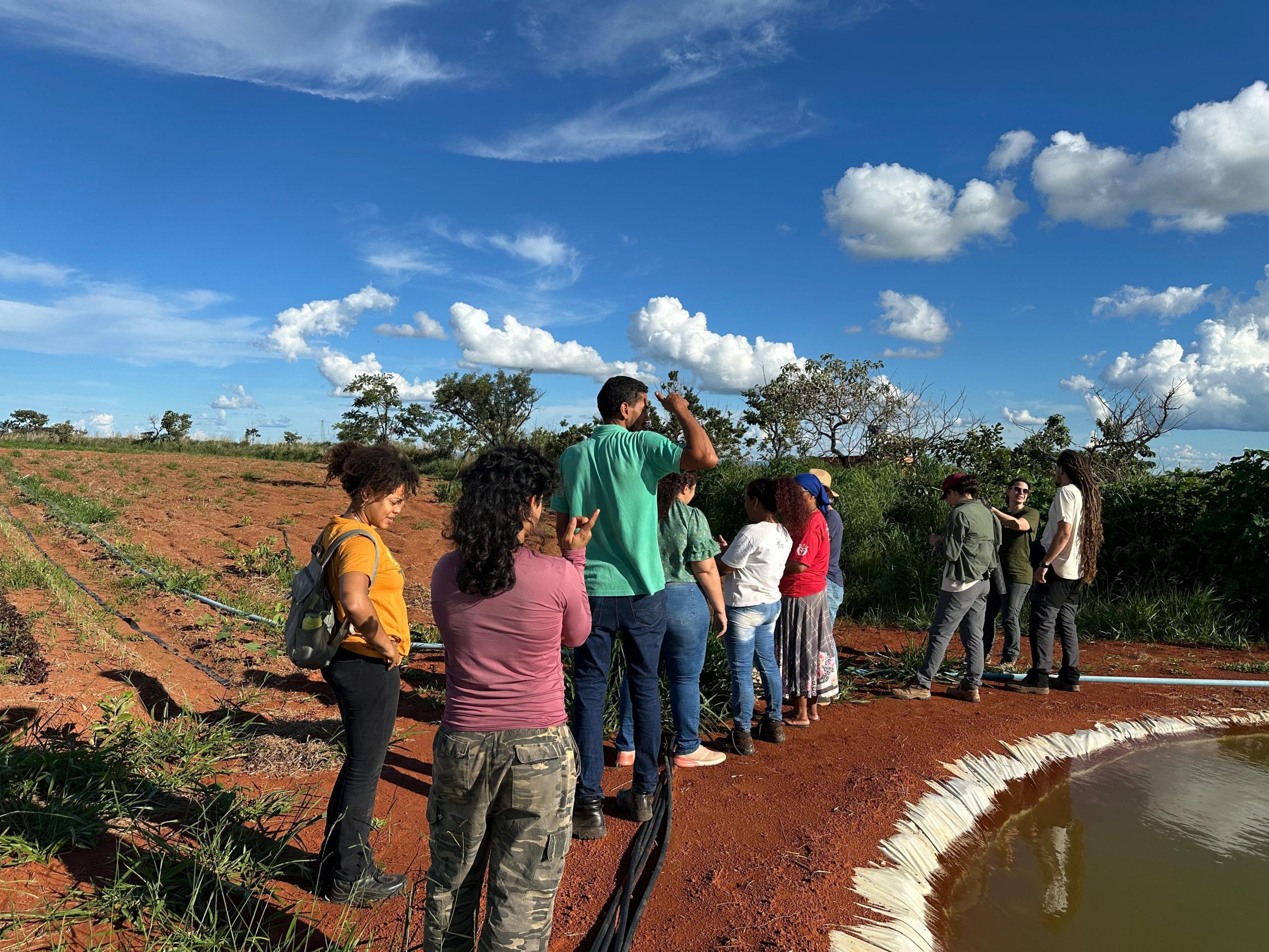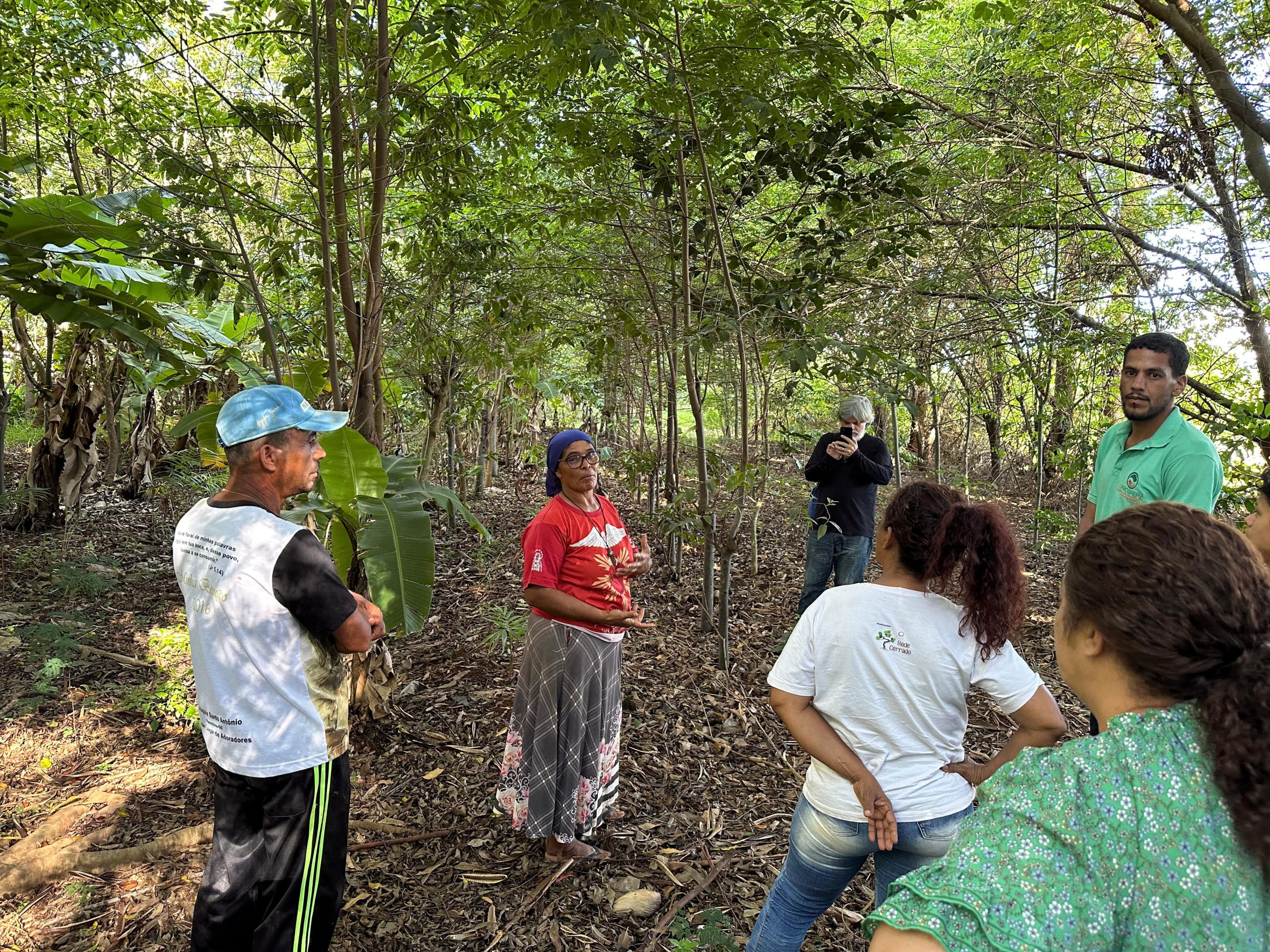 Para apresentação do sistema produtivo, os participantes realizaram visitas em duas áreas. Estiveram na propriedade da Dona Inês Santos e seu Sandro Santos, bem como da dona Emilene Paiva, onde foi possível conhecer outro contexto de implantação dos SACEs e participar de uma muvuquinha com o plantio coletivo de sementes nativas do Cerrado.