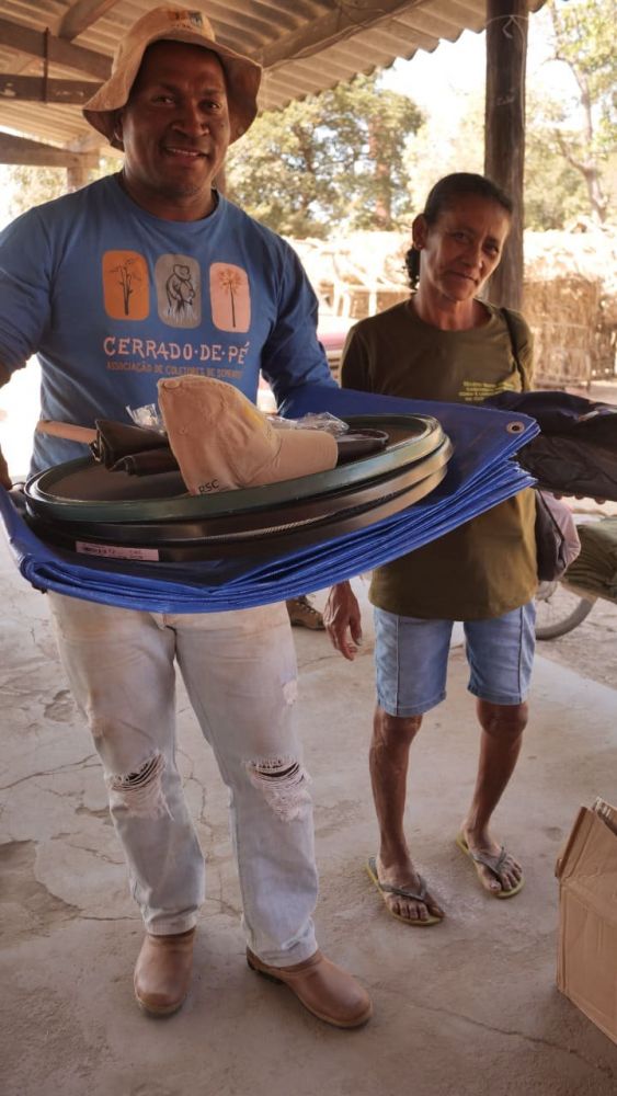 Os kits foram adquiridos com recursos de dois projetos distintos. Enquanto o Projeto Copaíbas financiou uma parte dos materiais, a Cerrado de Pé complementou com outros itens, por meio do Projeto Bem Maior, todos pensados para atender às necessidades específicas desses trabalhadores", completa Natanna Horstmann. Na próxima quinta-feira, 27 de junho, está agendada a entrega para cerca de 40 coletores que residem nas proximidades da Casa de Sementes na região de Alto Paraíso.